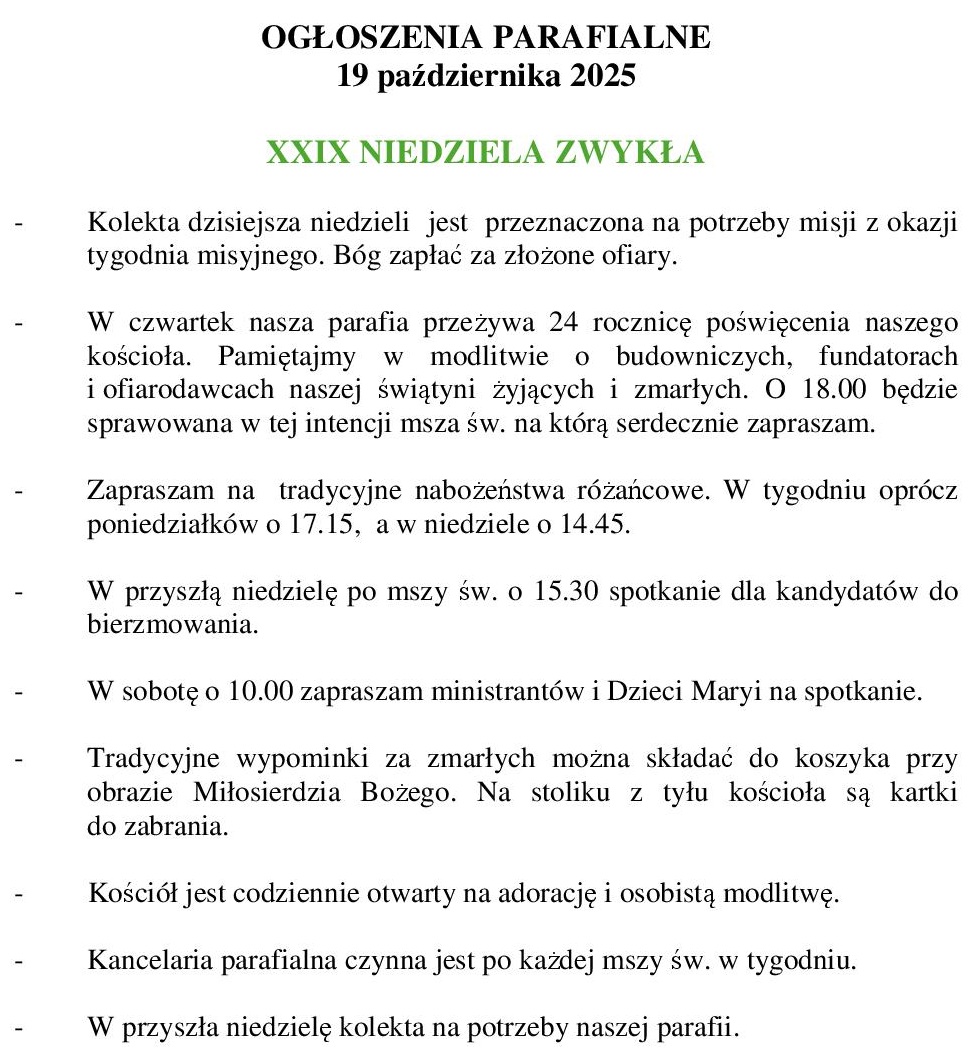 - dni powszednie: poniedziałek